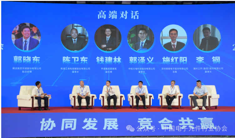 随后,大会进入主题演讲阶段。陈学东院士、许善达原副局长、电子科技大学通信抗干扰全国重点实验室陈智副主任、华为技术有限公司元器件TQC首席专家卢艳东、南通江海电容器股份有限公司丁继华总裁、国汽(北京)智能网联汽车研究院有限公司事业部唐风敏总经理、中国科学院微电子研究所系统封装与集成研发中心李君副主任、脑机接口产业联盟系统与行业应用组周洁主席、中国科学院半导体研究所陈雄斌研究员、中电科机器人有限公司机器人中心范春辉副主任、中国科学院上海硅酸盐研究所马名生研究员、四川英杰电气股份有限公司陈金杰副总经理等专家分别围绕无人西痛、财税改革、磁器件自动化、电容器、车路云一体化、“芯粒(Chiplet)”技术、脑机接口技术、可见光通信技术、人形机器人技术、多层陶瓷技术、工业电源等电子元器件相关市场、技术的发展做了精彩的演讲。中国电子元件行业协会李锋副秘书长在会上作了《2023-2024中国电子元器件行业发展报告》,介绍近两年来中国电子元器件行业的发展情况。? 由于临时接到教育部召开会议的通知,中国工程院院士、华中科技大学教授陈学东无法出席峰会现场,但通过视频连线的方式,为我们讲述了《智能移动无人系统关键技术与应用》。? 国家税务总局原副局长许善达作《新一轮财税体制改革对我国制造业的影响》的报告? 电子科技大学通信抗干扰全国重点实验室副主任陈智作《面向6G的太赫兹通信技术与应用》的报告? 华为技术有限公司元器件TQC首席专家卢艳东作《磁器件自动化端到端方案探索》的报告? 南通江海电容器股份有限公司总裁丁继华作《电容器在能源电子领域的技术和应用发展趋势》的报告? 国汽(北京)智能网联汽车研究院有限公司事业部总经理唐风敏作《“车路云一体化”建设与应用发展前景展望》的报告? 中国科学院微电子研究所系统封装与集成研发中心副主任、研究员李君作《面向高算力的集成芯片封装工艺与模组集成技术》的报告? 脑机接口产业联盟系统与行业应用组主席周洁作《脑机接口技术的发展现状及未来趋势》的报告? 中国科学院半导体研究所研究员陈雄斌作《可见光通信发展现状与趋势》的报告? 中电科机器人有限公司机器人中心副主任范春辉作《人形机器人核心部组件趋势及应用验证》的报告? 中国科学院上海硅酸盐研究所研究员马名生作《多层陶瓷技术与功能集成器件》的报告? 四川英杰电气股份有限公司副总经理陈金杰作《电子元器件在工业电源领域的应用》的报告? 中国电子元件行业协会副秘书长兼信息中心主任李锋作《2023-2024中国电子元器件行业发展报告》的报告除了行业内外知名专家和优秀企业代表的高质量专题报告之外,峰会还特设了高端对话环节,南通江海电容器股份有限公司陈卫东董事长、亨通集团董事局钱建林副主席、中航光电科技股份有限公司郭泽义董事长、深圳顺络电子股份有限公司施红阳总裁、潮州三环(集团)股份有限公司李钢董事长,就电子元器件与新质生产力、行业内卷现象以及未来行业发展预测,开展了热烈讨论。