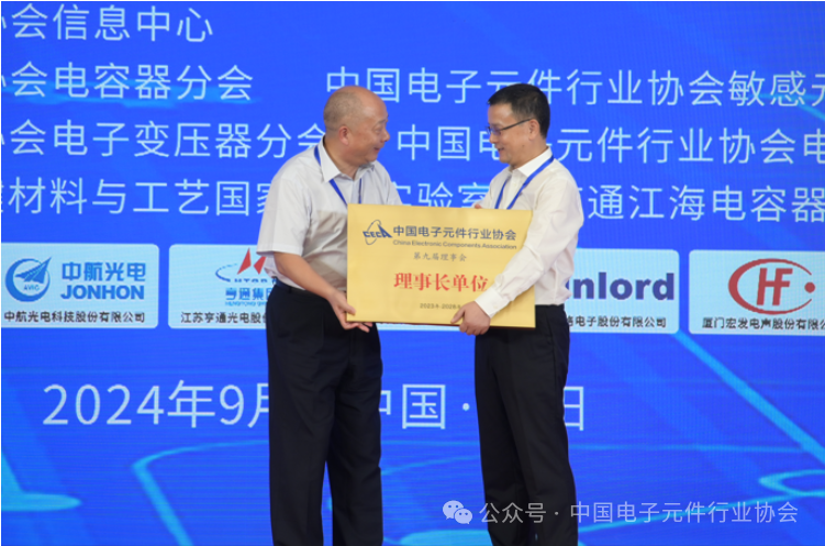 会上,还举行了2024年中国电子元器件行业骨干企业和第二十批中国电子元件行业企业信用等级评价授信单位授牌仪式。? 第二十批中国电子元件行业企业信用等级评价授信单位授牌仪式峰会最后,举行了中国电子元件行业协会第九届理事会轮值理事长交接仪式,由当值理事长陈卫东将“理事长单位”牌匾交接给下一轮理事长钱建林。